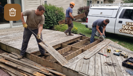 The Deck Company provides full-service deck solutions including new deck installation, structural deck repair, board replacement, railing and stair repairs, and complete deck removal. Whether you need a brand-new deck, want to restore an aging structure, or need a safe and efficient demolition, we are your one-call solution for reliable deck services.